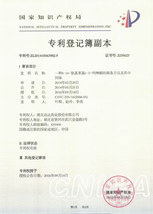 公司擁有一支高素質科研隊伍,具備專業(yè)而高效的研發(fā)能力。近幾年,共取得科技成果30項,其中9項獲國家發(fā)明專利,2項獲湖北省科技進步獎,開發(fā)新產(chǎn)品8個,綠色合成、手性合成和催化等技術引領行業(yè)發(fā)展。主要銷往歐美、日本、韓國、中東、印度等40多個國家和地區(qū)。